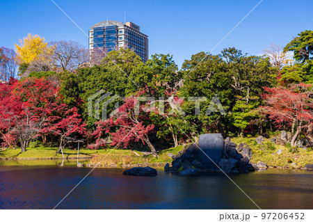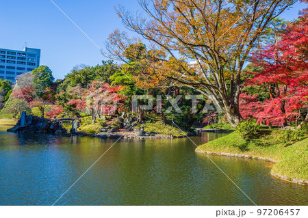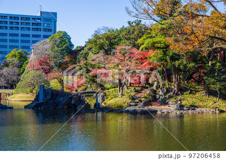 秋の東京 紅葉の小石川後楽園 蓬莱島