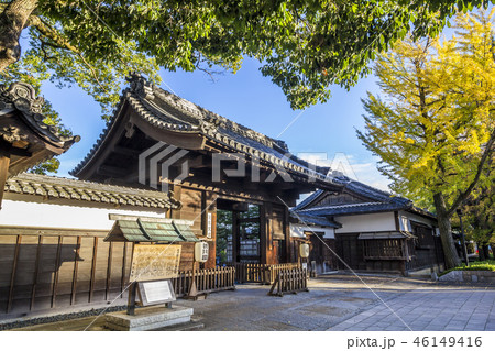 徳川園黒門とイチョウ