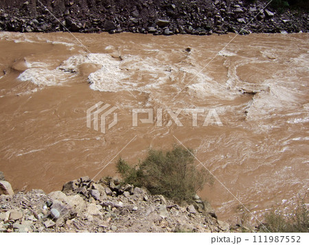 中国 雲南省 徳欽県 雨のメコン川上流 欄滄江渓谷