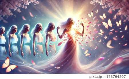 心の解放により、変容する女性の姿 心理・スピリチュアル系イラスト