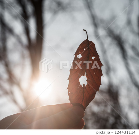枯れ葉で遊ぶ