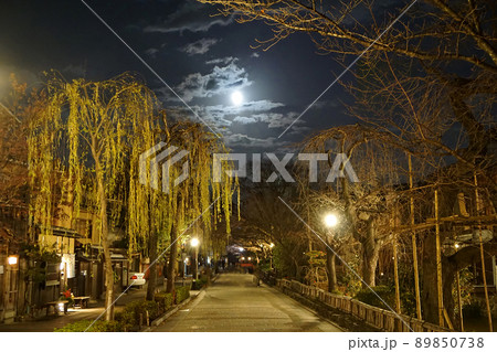 柳の木が怪しく揺れる美しい祇園の夜【京都】