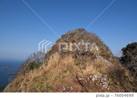 長崎県 平戸島 山頂手前の登山道から見る志々伎山