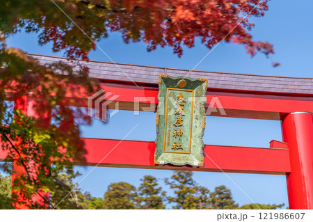 志波彦神社 鳥居 紅葉 秋