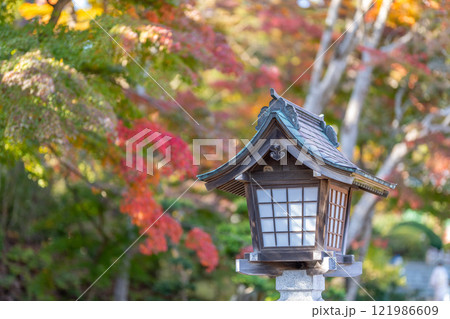 志波彦神社 灯籠 紅葉 秋