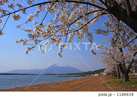 春の猪苗代湖と磐梯山(福島県・猪苗代町)