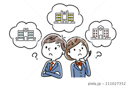 ベクターイラスト素材:学校の進路を思い浮かべる生徒たち