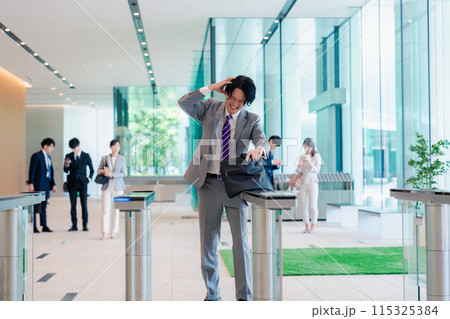 社員証を忘れて焦るビジネスマン