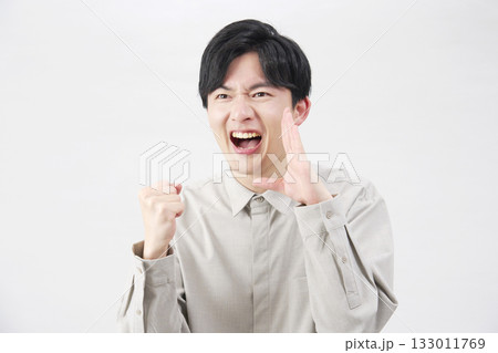 男性 20代 応援 白背景 右向き