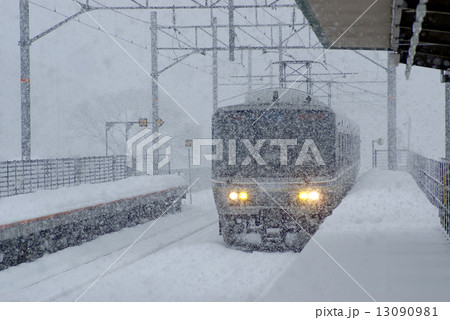 JR西日本北陸線近江塩津駅に進入する新快速電車