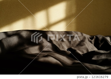 温かい光が差し込んだ夕暮れの部屋のベッド
