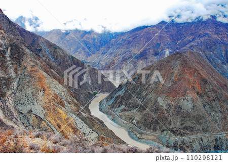 中国 雲南省 徳欽県 雨のメコン川上流 欄滄江渓谷