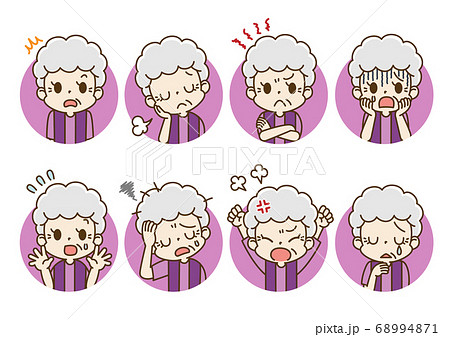 表情セット 高齢女性 おばあちゃん フレームあり(マイナスな気持ち)