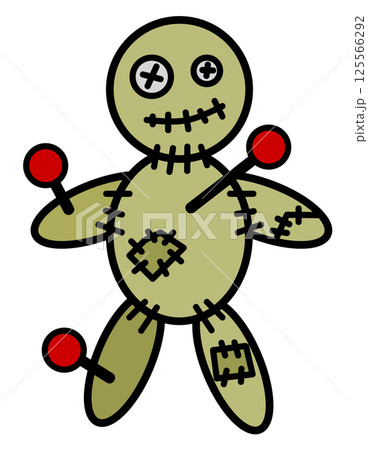 呪いや恨みの怨念を込めて人形に釘を打ち込む怖いイラスト