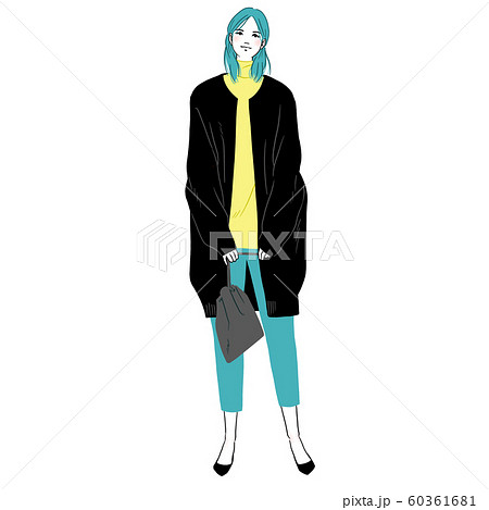 ポーチを持って立っている若い女性