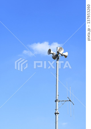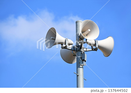 繁った樹木の葉に音声が遮られそうなスピーカー