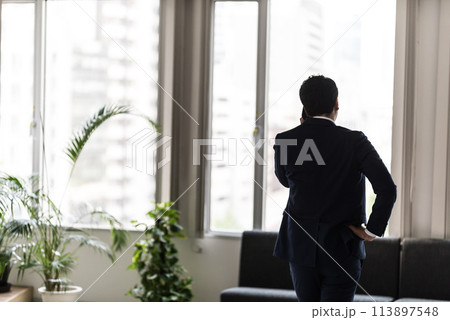 空港で携帯電話で通話する男性 ■撮影協力:関西国際空港(KIX)
