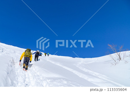 (谷川岳)雪山を登る登山者たち