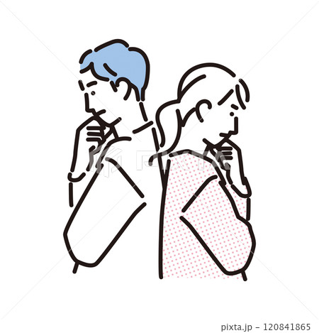 シンプル イラスト 悩みを抱える若い夫婦の男性と女性