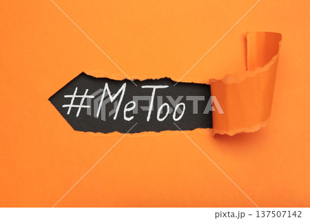 Internet protest hashtag MeToo on ripped orange paper, used for campaign against sexual violence and abuse of women