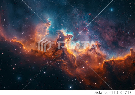 星々の誕生と終焉を描く宇宙絵巻:無限の宇宙の鮮やかなアートワーク AI生成 104