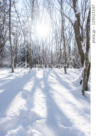 森の新雪 木漏れ日の風景(恩原湖周辺)