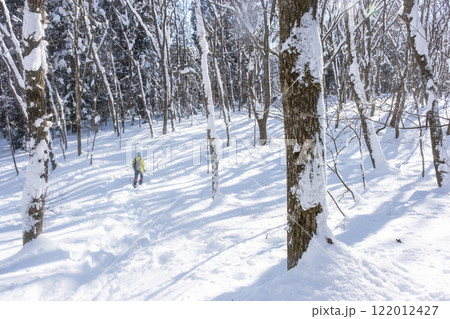 森の新雪 木漏れ日の風景(恩原湖周辺)