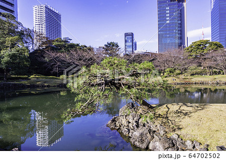 東京都 浜離宮恩賜庭園 横堀とビル群