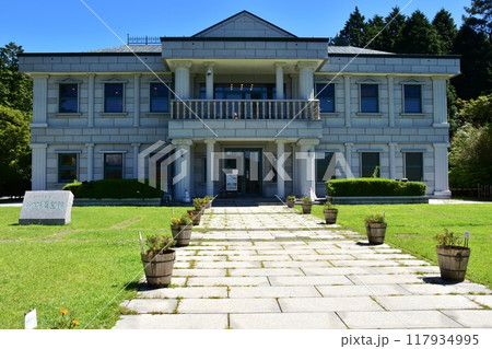 箱根町 神奈川県立恩賜箱根公園の湖畔展望館と中央広場