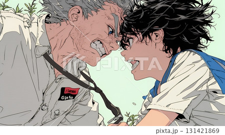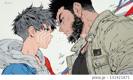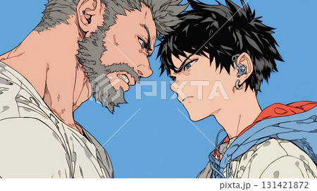 親子喧嘩:青年男子の息子と父親がいがみ合っている