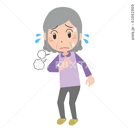 おばあさん 動悸息切れ 女性 息が上がる 息遣い 深呼吸 更年期障害