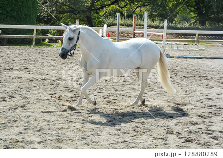 馬場を走る白馬