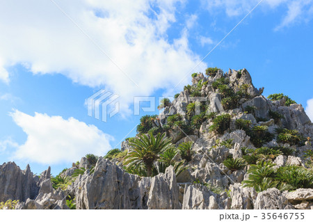大石林山、ソテツとの奇岩、沖縄県国頭郡国頭村