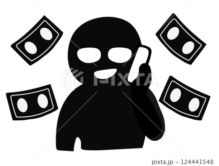 電話を使った詐欺を行う犯人のベクターイラスト