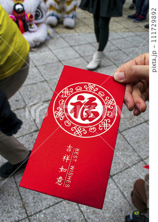 横浜中華街 春節祭 採青 春節祈願獅子舞 祝儀袋(紅包) 横浜マリンタワー前にて