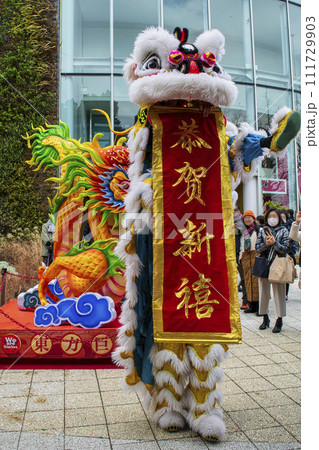 横浜横浜中華街 春節祭 採青 春節祈願獅子舞 横浜マリンタワー前にて