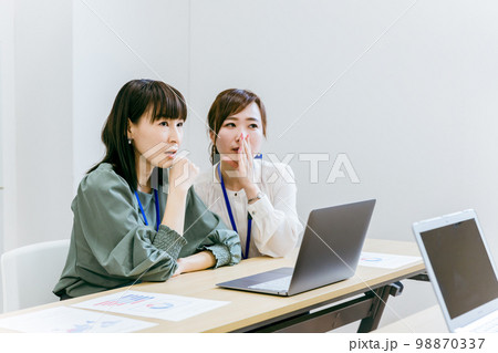 会社のオフィス・会議室で噂話・陰口・悪口を言うビジネスウーマン