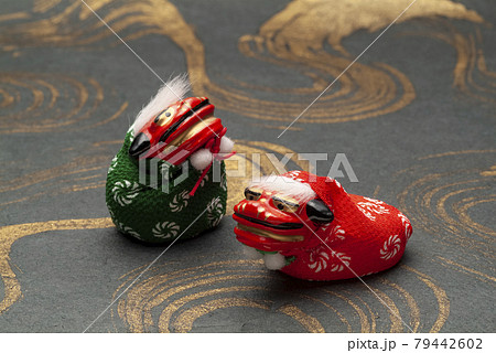 日本の正月小物「獅子舞」のベクターイラスト。