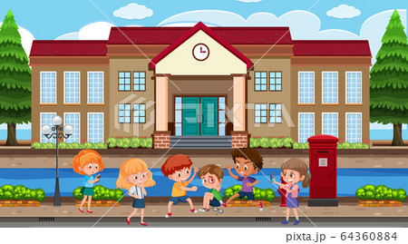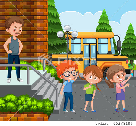 Scene with kid bullying their friend at school