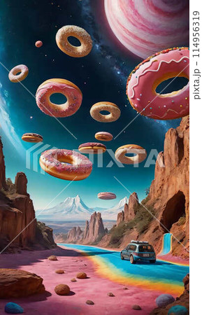 ドーナツたくさんわくわく銀河星 升目ノートにお絵描き風 Generative AI