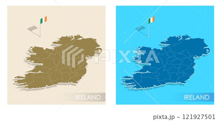 Ireland country flag installed on geographic positioning map point of country territory. Irish commonwealth banner on land and sea. Festive patriotic HD format template for independence day
