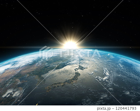 地球 正月 謹賀新年 日の出 太陽 日本中心