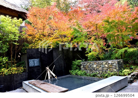 湯河原町 万葉公園万葉公園湯河原惣湯玄関テラスと紅葉