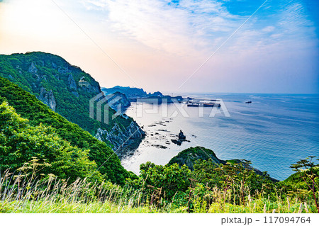 北海道 雄冬岬 展望台 海 草木 崖