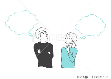 一緒に考える若い男女、カップル、夫婦のイメージイラスト