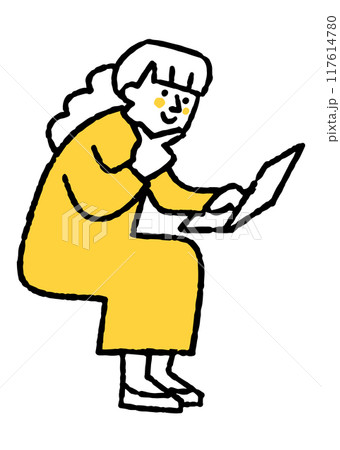 考えるビジネスパーソン、カジュアルな服装の女性