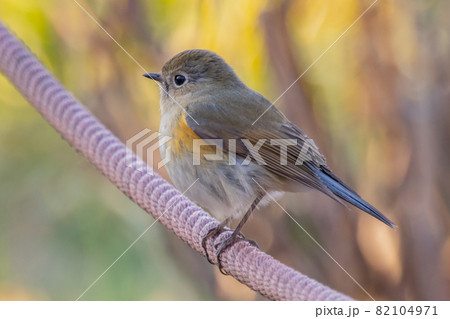 瑠璃色をオレンジ色をまとった冬に訪れる人気者 ルリビタキの雌