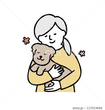 犬を優しく抱きしめる女性のベクターイラスト素材