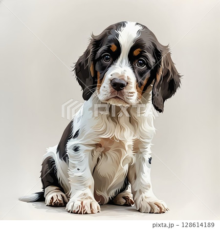 イングリッシュスプリンガースパニエルの子犬が正面でおすわり