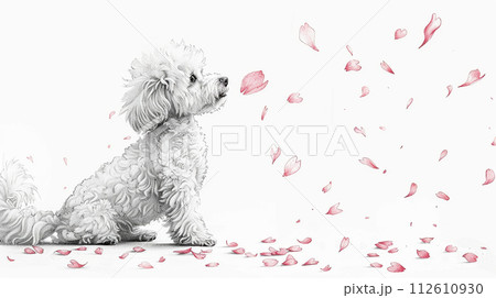 桜の花びらと戯れているトイプードル